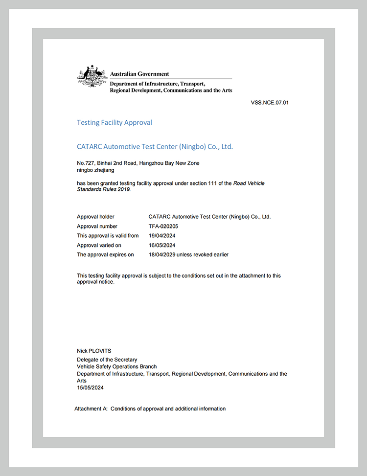 澳大利亞DOTARS車輛安全標準部(VSS)實驗室認可