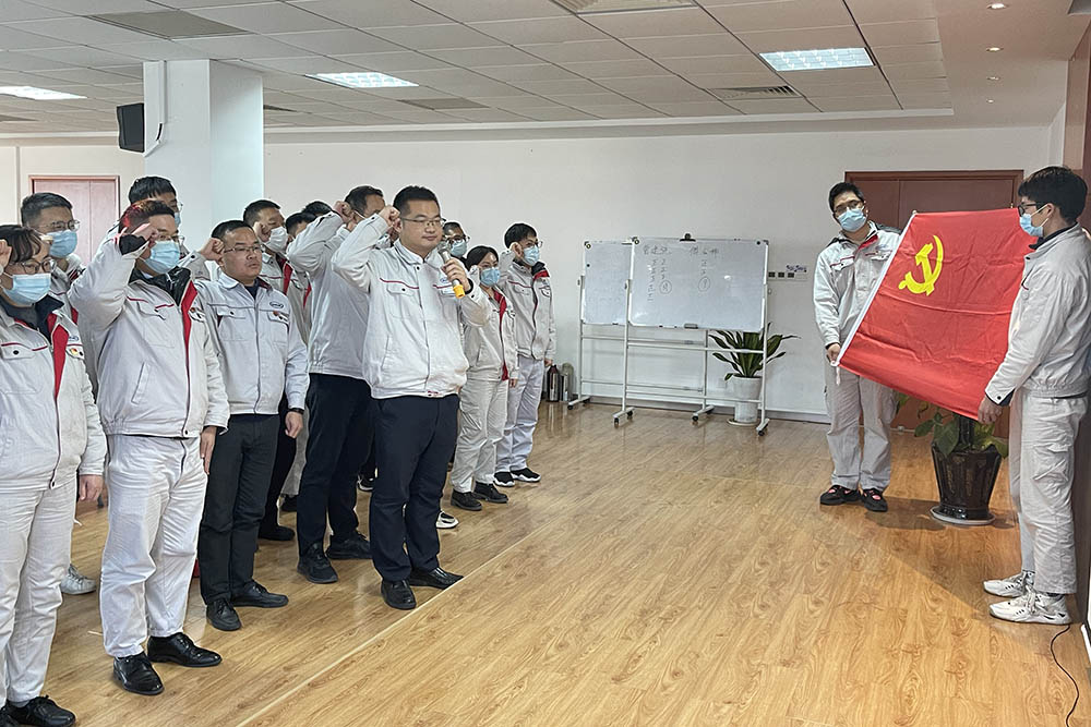 “我志愿加入中國共產黨,擁護黨的綱領,遵守黨的章程,履行黨員義務,執行黨的決定......”,在曹建驍同志的帶領下,24名黨員面向鮮紅的黨旗重溫入黨誓詞。隨后,葉德縣、丁旭兩位黨員代表發言,分享入黨初心,在場黨員深受感染,更加堅定了對中國共產黨的無限忠誠。