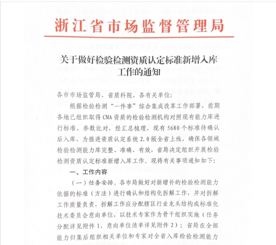 檢驗檢測“一件事”綜合集成改革是浙江省優化營商環境“一號改革”工程的重要內容,浙江省市場監督管理局為推進資質認定系統2.0版全省上線,確保各領域檢驗檢測能力庫完整、準確、有效,決定組織開展檢驗檢測資質認定標準新增入庫工作。全省有5680個標準待確認入庫,且限時完成,我司積極參與,承擔部分標準確認與結構化拆解工作。