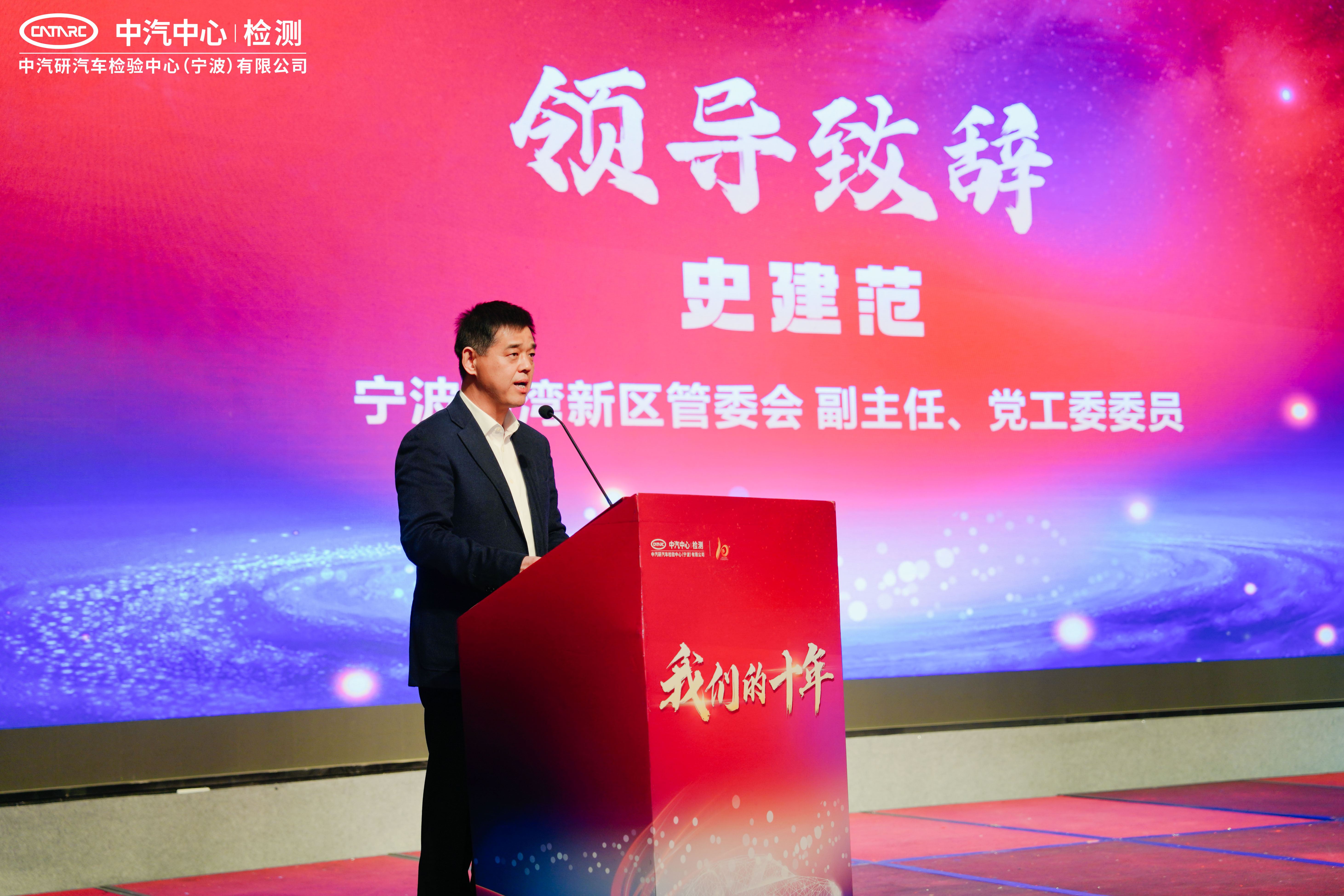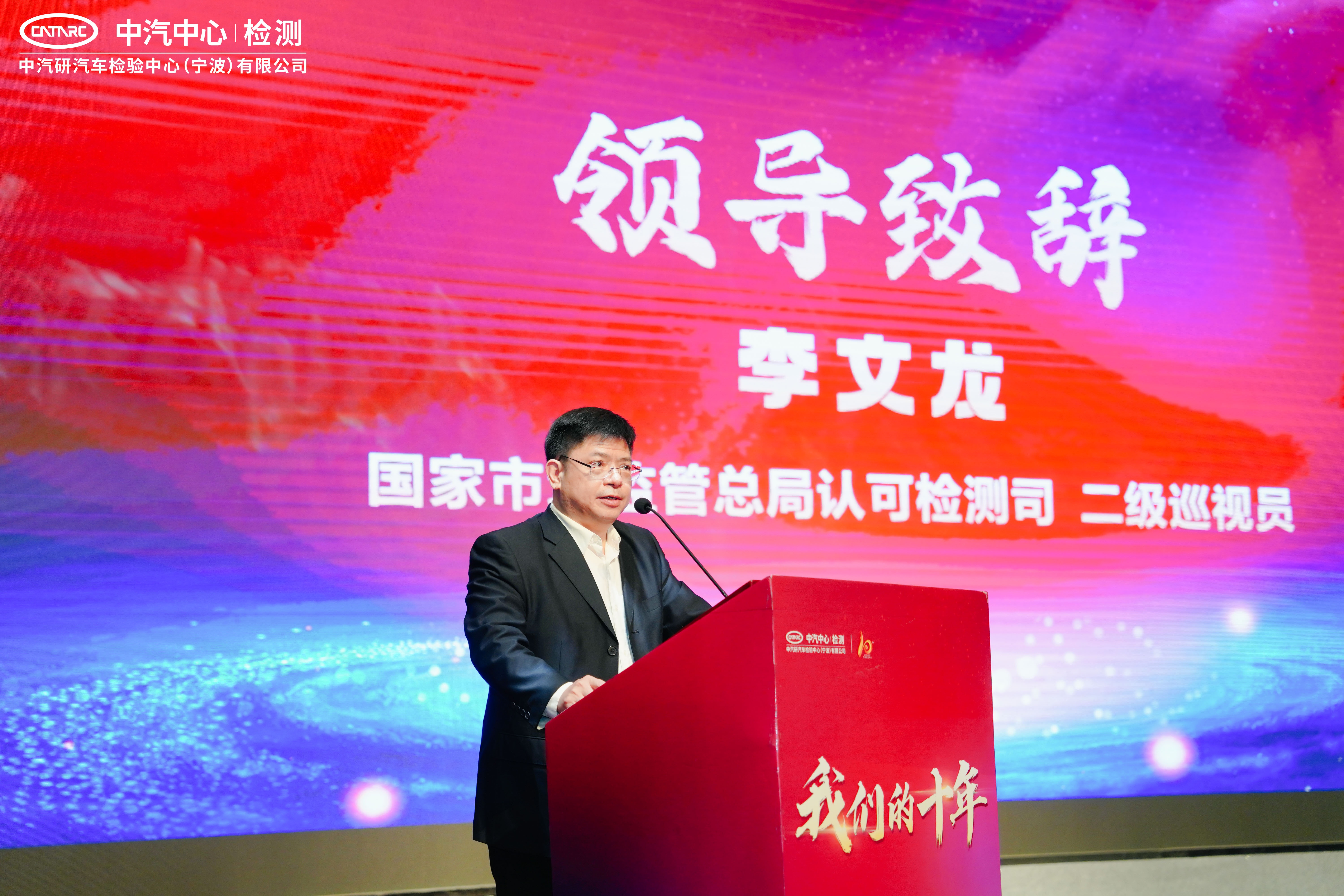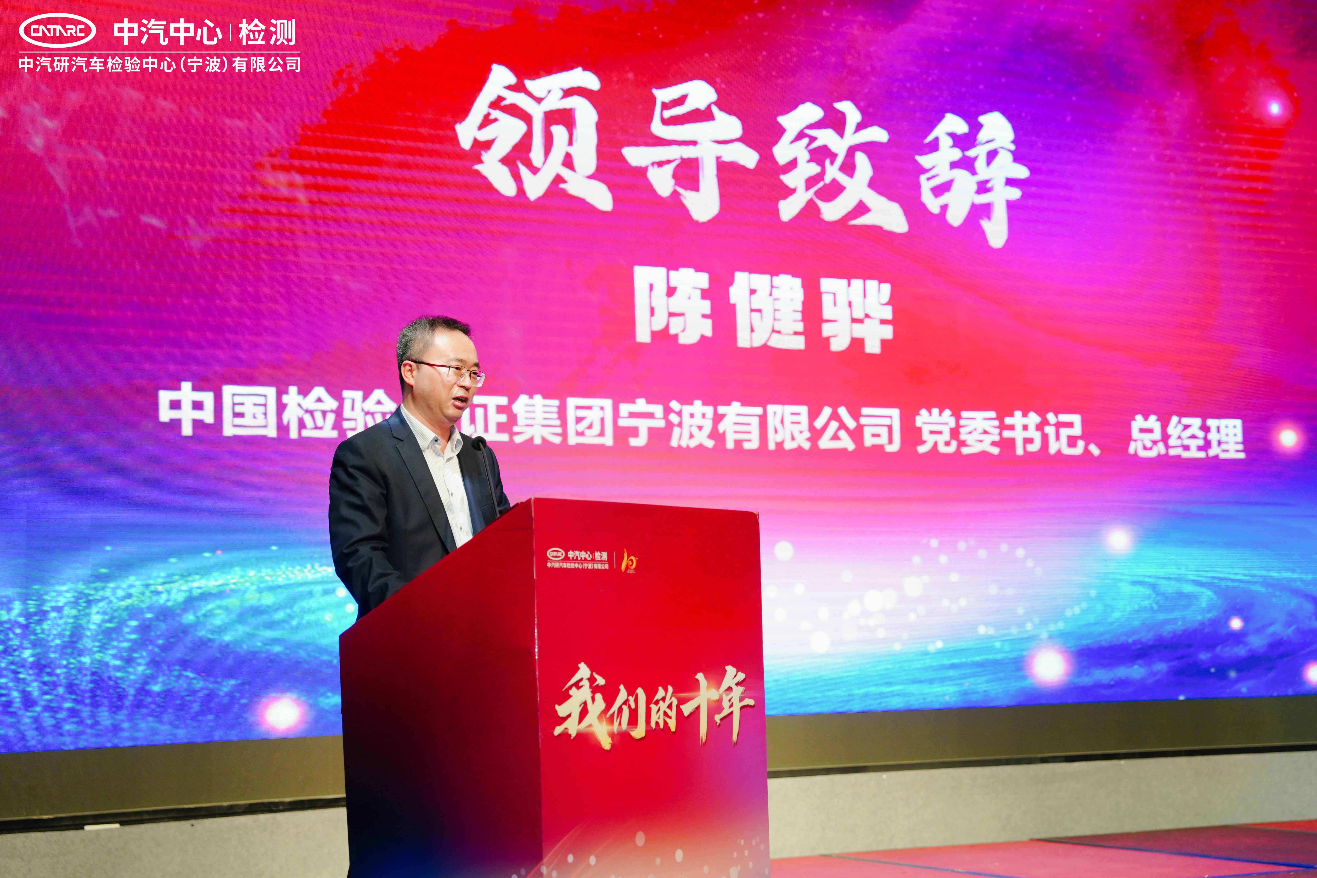 中國檢驗(yàn)認(rèn)證集團(tuán)寧波有限公司黨委書記、總經(jīng)理陳健驊致辭,他表示寧波檢驗(yàn)中心是中汽中心與中國中檢合作的結(jié)晶。寧波檢驗(yàn)中心運(yùn)營十年來,以服務(wù)寧波及長三角汽車產(chǎn)業(yè)發(fā)展為己任,為產(chǎn)業(yè)發(fā)展做出了積極的貢獻(xiàn),同時(shí)也在經(jīng)營績(jī)效、科研成果、人才培養(yǎng)等各方面取得了優(yōu)異成績(jī)。陳健驊代表中國中檢向支持寧波檢驗(yàn)中心發(fā)展的領(lǐng)導(dǎo)和朋友們致以最誠摯的感謝。他祝福寧波檢驗(yàn)中心站在十年這個(gè)新的發(fā)展起點(diǎn)再譜新篇章,再創(chuàng)新輝煌。