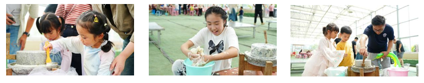接下來,大家分別體驗(yàn)了敲拓然、石磨豆?jié){、繪制風(fēng)箏等活動。